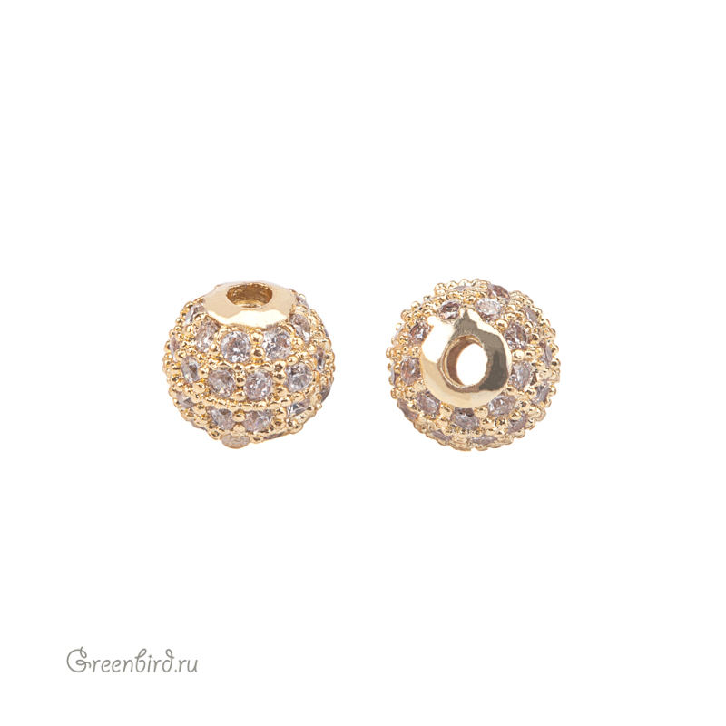 Металлическая бусина в форме шара с фианитами. Материал: латунь, покрытие: золото. Размер: 5,8 х 6 мм, диаметр отверстия: 1,5 мм. Производство: Китай. Цена указана за 1 шт.