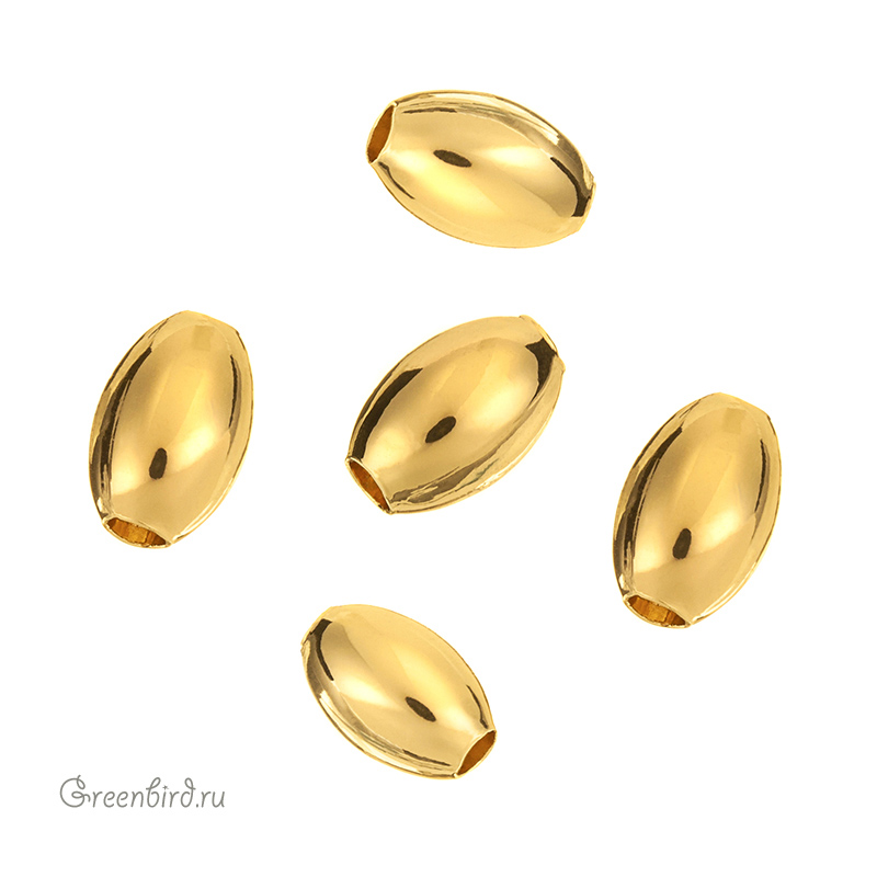 Металлическая бусина в форме риса или зернышка, полая и гладкая. Материал: латунь, покрытие: золото. Размер: 6 х 5 мм, отверстие: 1,5 мм. Производство: Китай. Цена указана за 1 шт.