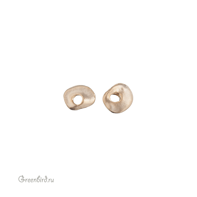 Металлическая бусина со смещенным отверстием. Материал: пьютер (оловянный сплав), покрытие: матовое золото. Размер: 6,8 х 5,8 х 1,6 мм, отверстие: 1,8-2 мм. Размер и форма могут незначительно отличаться. Производство: Корея. Цена указана за 1 шт.