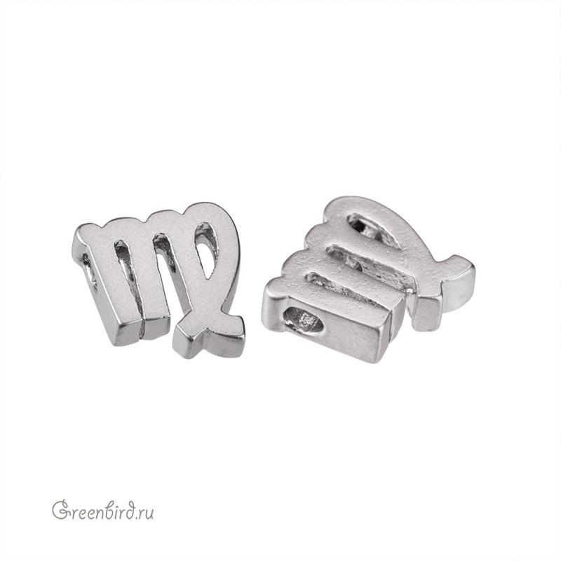 Металлическая бусина в форме зодиакального символа (Дева). Материал: латунь, покрытие: матовый родий. Размер: 7,7 х 7,6 мм, толщина: 2,6 мм, отверстие: 1,3 мм. Производство: Корея. Цена указана за 1 шт.