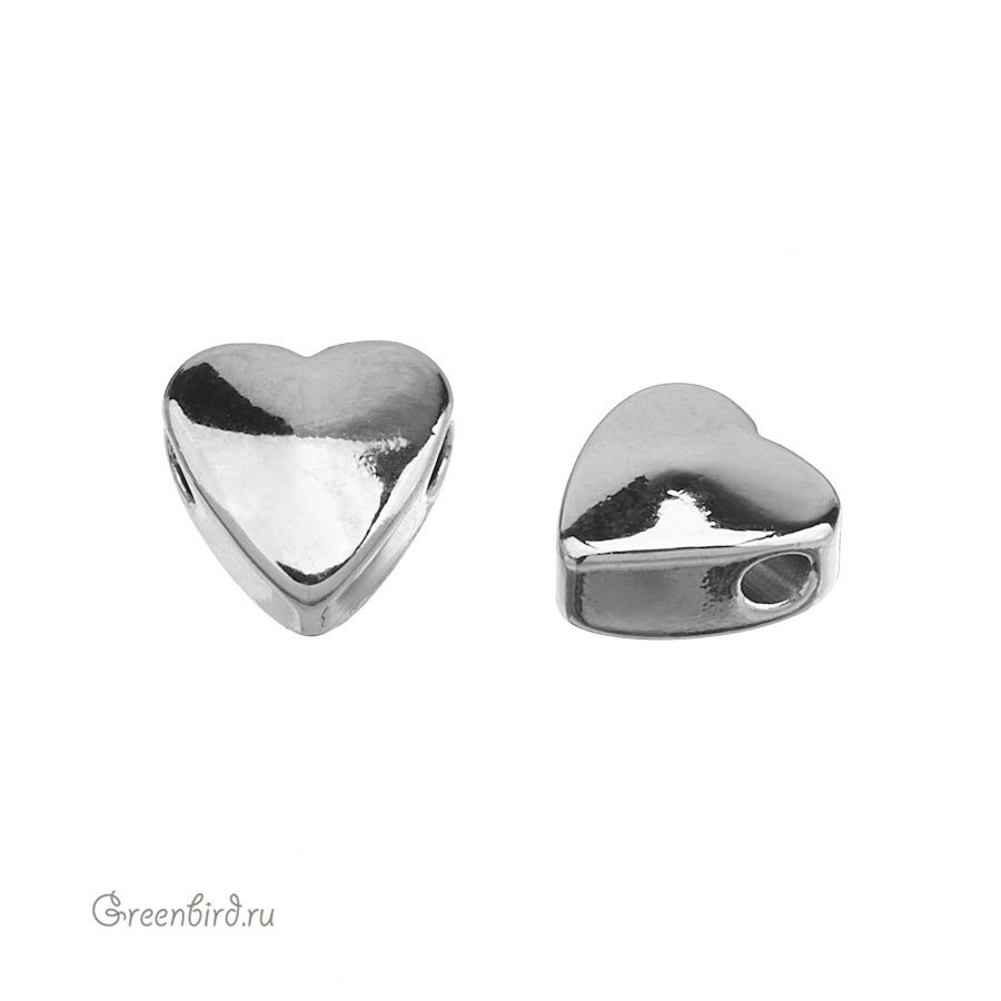 Металлическая бусина гладкая в форме слегка выпуклого сердечка. Материал: латунь, покрытие: родий. Размер: 5,6 х 6 х 3,5 мм, диаметр отверстия примерно 1,3ена указана за 1 шт.
