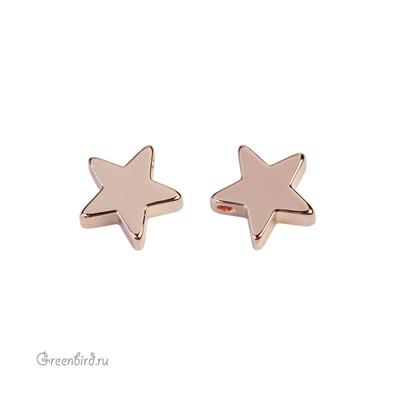 Металлическая бусина в форме звездочки с отверстием в луче. Может использоваться как подвеска. Материал: латунь, покрытие: розовое золото. Размер: 8,7 х 8,3 мм, толщина: 2,9 мм, отверстие: 1,4 мм. Производство: Корея. Цена указана за 1 шт.