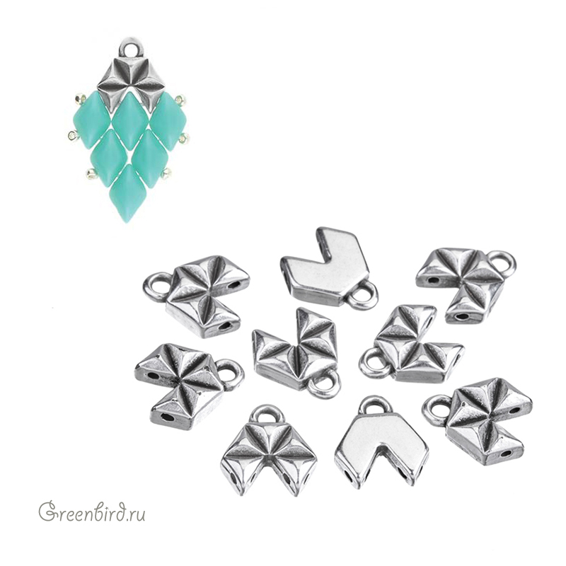 Металлический концевик CYMBAL "Voudia" для работы с бусинами GemDuo. Размер с колечком: 10,6 х 9,3 мм, отверстия для крепления: 0,8 мм, колечко: 1,7 мм. Материал: латунь, покрытие: античное серебро. Производство: Греция. Цена указана за 1 шт.