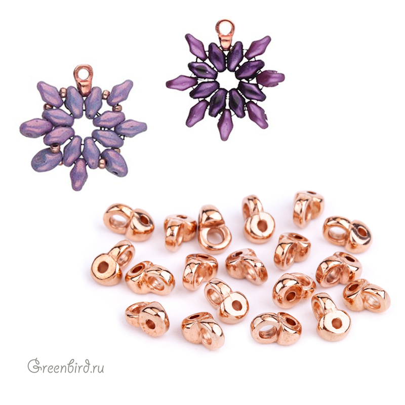 Металлический концевик CYMBAL "Remata" для работы с бусинами SuperDuo. Размер с колечком: 5,3 х 4,6 мм, отверстия для крепления: 0,8 мм, колечко: 1,6 мм. Материал: латунь, покрытие: розовое золото. Производство: Греция. Цена указана за 1 шт.
