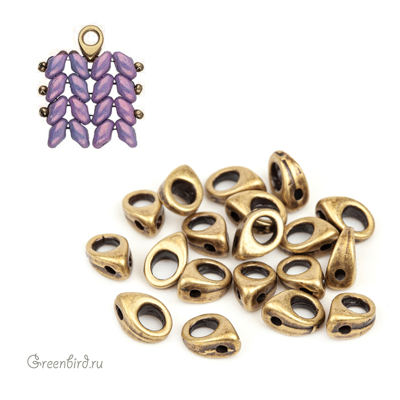 Металлический концевик CYMBAL "Kolympos" для работы с бусинами SuperDuo. Размер с колечком: 5,8 х 4 мм, отверстия для крепления: 0,8 мм, колечко: 2,5 мм. Материал: латунь, покрытие: античная латунь. Производство: Греция. Цена указана за 1 шт.