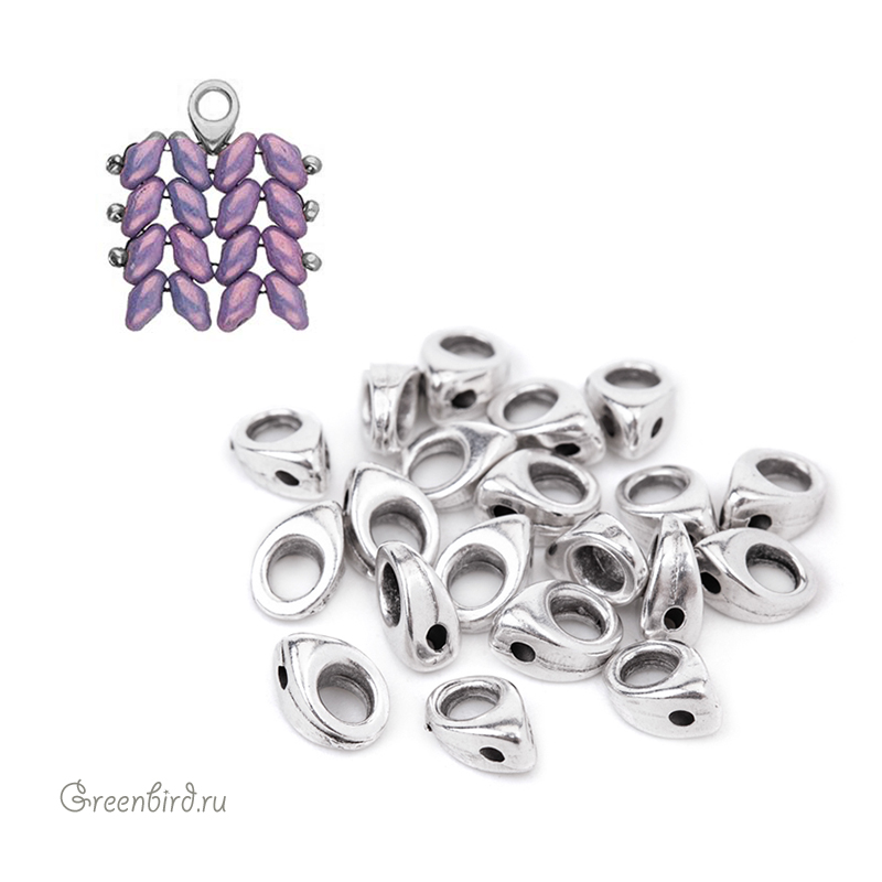 Металлический концевик CYMBAL "Kolympos" для работы с бусинами SuperDuo. Размер с колечком: 5,8 х 4 мм, отверстия для крепления: 0,8 мм, колечко: 2,5 мм. Материал: латунь, покрытие: античное серебро. Производство: Греция. Цена указана за 1 шт.