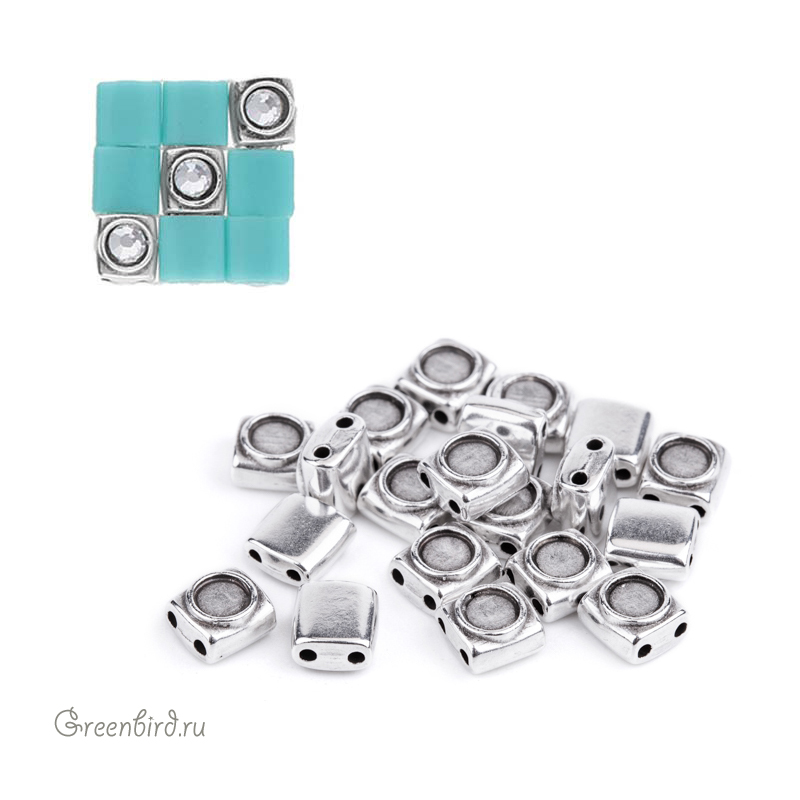 Металлическая бусина Tila CYMBAL "Peponas" с текстурированной лицевой стороной и гладкой оборотной. Текстурированную сторону можно использовать для вклейки страз арт. 2088 SS12 (3 мм). Размер: 5 х 5 мм, отверстия примерно 0,8 мм. Материал: латунь, покрытие: античное серебро. Производство: Греция. Цена указана за 1 шт.