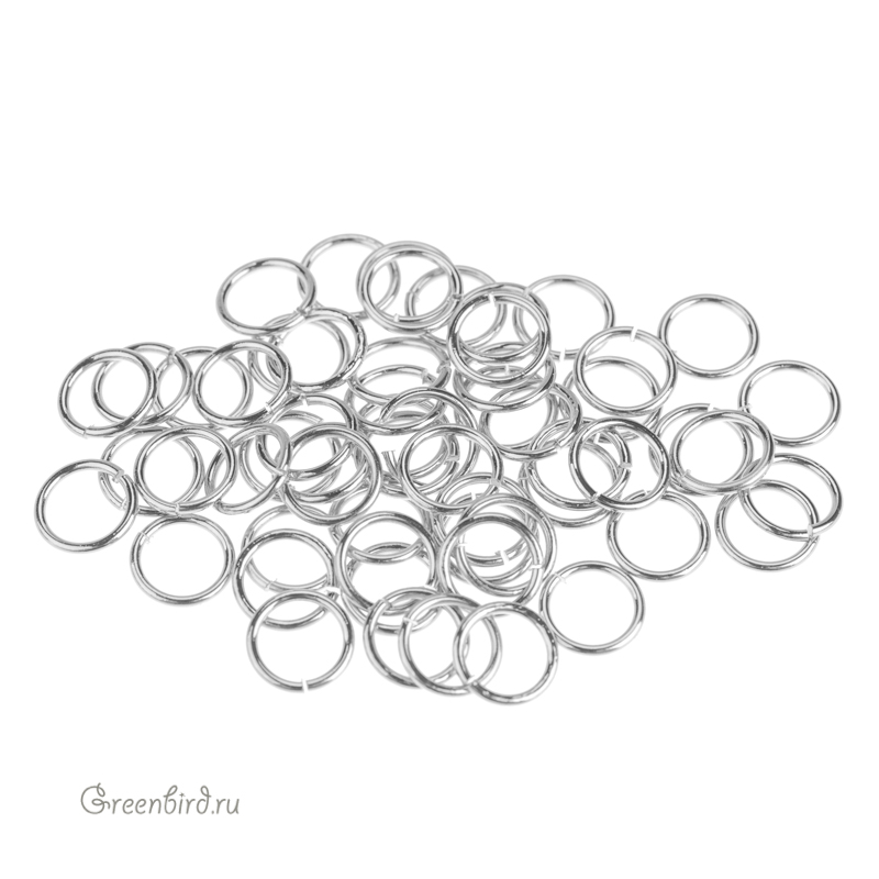 Фурнитура для бижутерии - соединительные кольца. Материал: латунь, покрытие: родий. Диаметр (внешний): 7,1 мм, толщина проволоки: 0,8 мм. Производство: Китай. Цена указана за 5 гр (примерно 50 штук).
