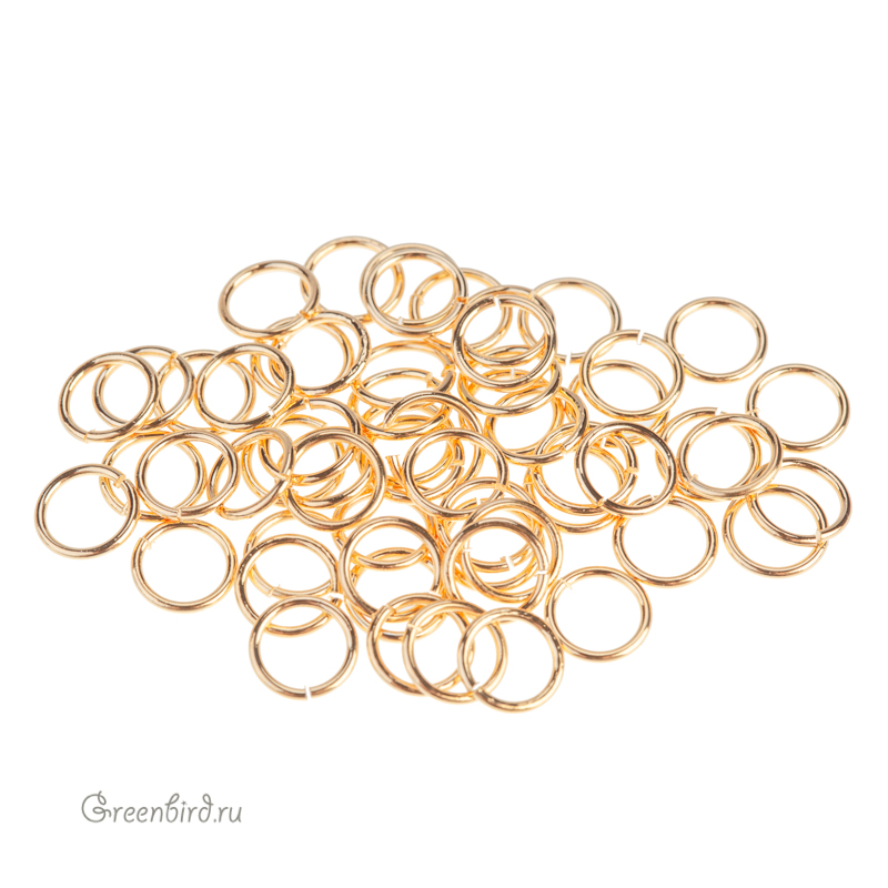 Фурнитура для бижутерии - соединительные кольца. Материал: латунь, покрытие: золото. Диаметр (внешний): 7,1 мм, толщина проволоки: 0,8 мм. Производство: Китай. Цена указана за 5 гр (примерно 47 штук).