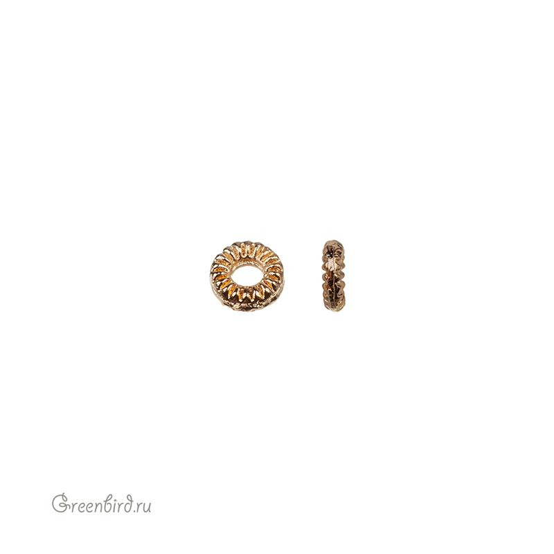 Фурнитура для бижутерии - коннектор-кольцо с текстурой. Материал: пьютер (оловянный сплав), покрытие: золото. Размер: 4 мм (внутренний примерно 1,5 мм), толщина: 1,2 мм. Производство: Корея. Цена указана за 1 шт.