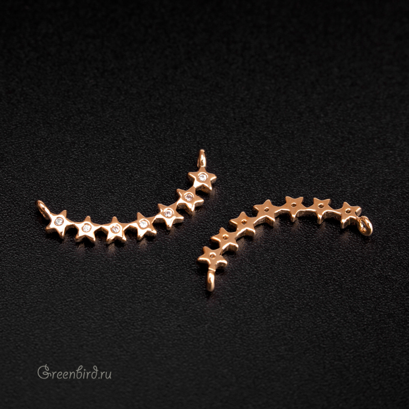 Фурнитура для бижутерии - коннектор с фианитами. Материал: латунь, покрытие: золото. Размер с колечками: 19,8 х 8,5 мм. Производство: Корея. Цена указана за 1 штуку.
