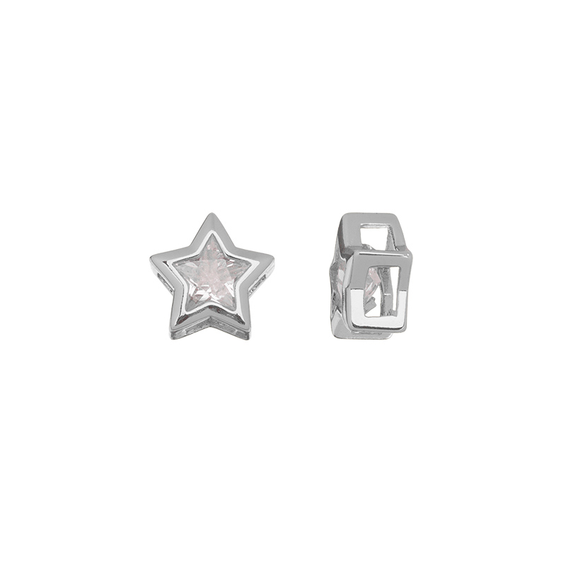 Фурнитура для бижутерии - коннектор (бусина, подвеска) в форме звездочки с фианитом. Материал: латунь, покрытие: родий. Размер с колечками: 8,7 х 8,7 x 4,6 мм, внутренний размер отверстий: 2 x 3,5 мм. Производство: Китай. Цена указана за 1 шт.