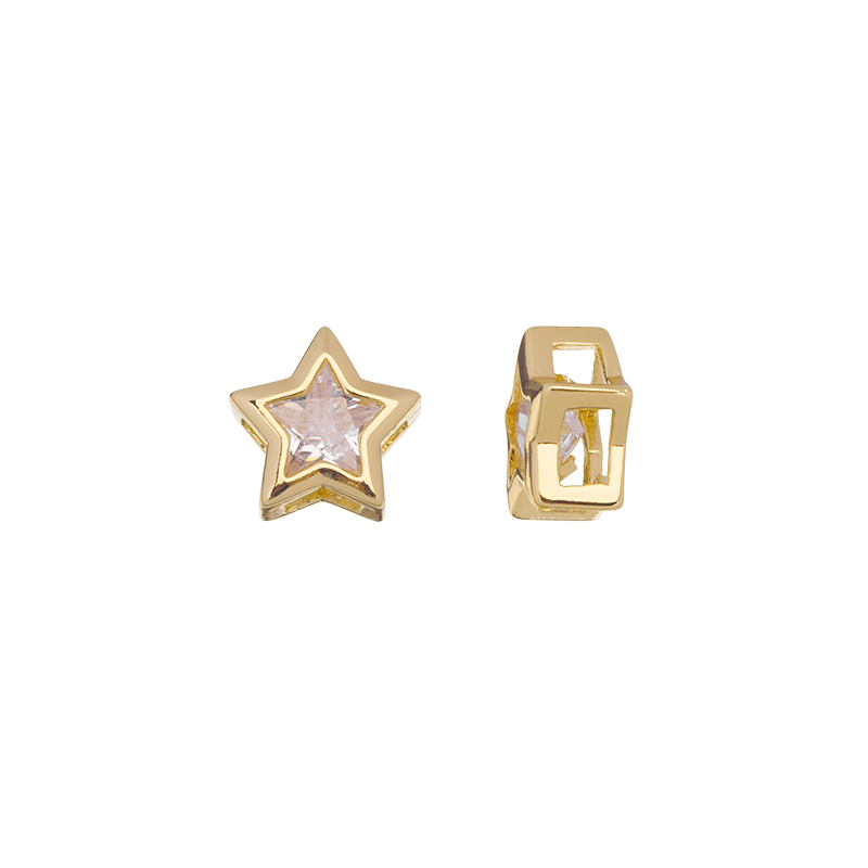 Фурнитура для бижутерии - коннектор (бусина, подвеска) в форме звездочки с фианитом. Материал: латунь, покрытие: золото. Размер с колечками: 8,7 х 8,7 x 4,6 мм, внутренний размер отверстий: 2 x 3,5 мм. Производство: Китай. Цена указана за 1 шт.