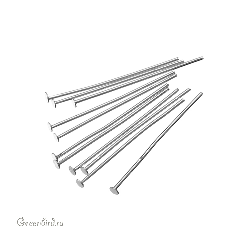 Фурнитура для бижутерии - мягкие пины со шляпкой. Материал: латунь, покрытие: родий. Длина: 20 мм, толщина: 0,5 мм, шляпка: 1,5 мм, производство: Корея. Цена указана за 10 штук.