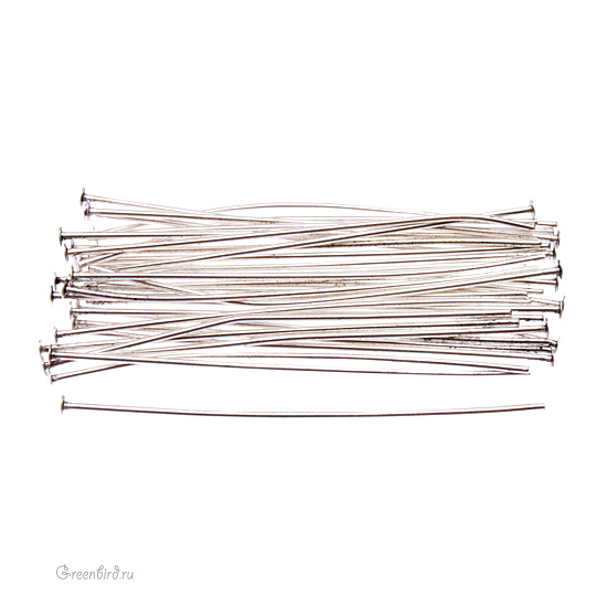 Фурнитура для бижутерии - пины со шляпкой (гвоздики). Цвет: серебро. Размер: 50 мм, толщина: 0,7 мм. Цена указана за набор (144 штуки).