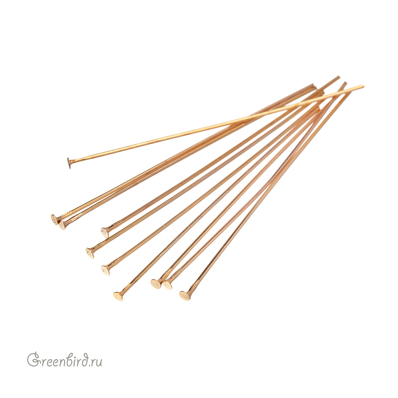 Фурнитура для бижутерии - пины со шляпкой. Материал: латунь, покрытие: золото. Длина: 50 мм, толщина: 0,7 мм, диаметр шляпки: 2 мм. Производство: Китай. Цена указана за 10 шт.