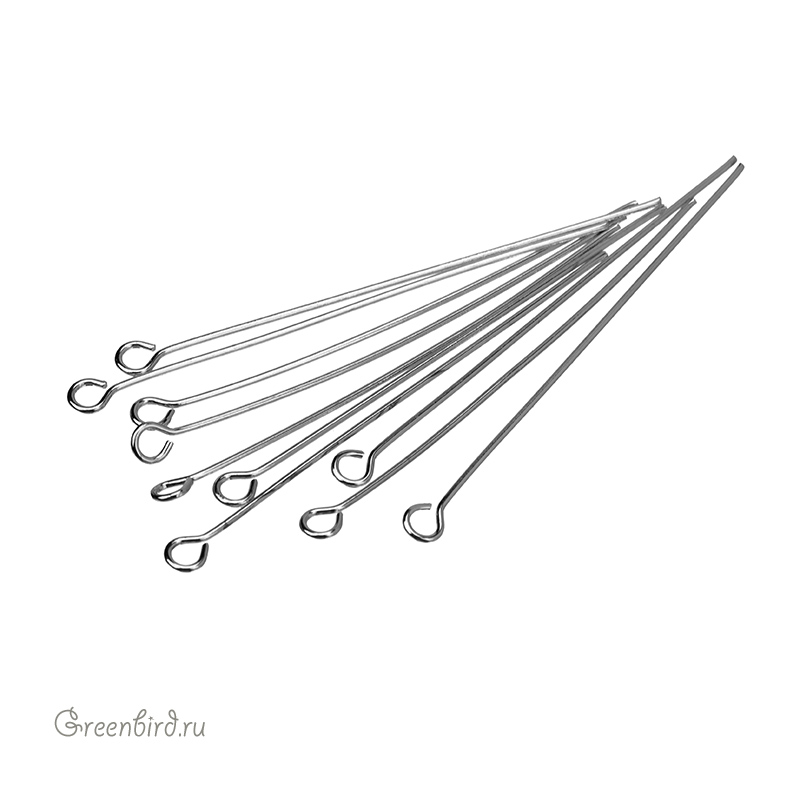 Фурнитура для бижутерии - пины с колечком. Материал: латунь, покрытие: родий. Длина: 50 мм, толщина: 0,7 мм, внутренний диаметр колечка: 2,2 мм. Производство: Китай. Цена указана за 10 шт.