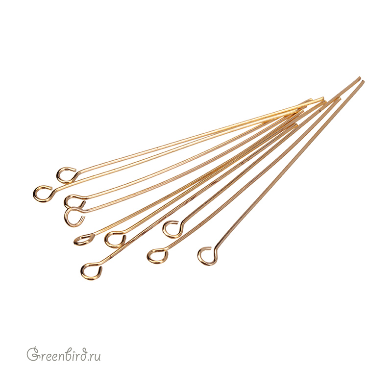 Фурнитура для бижутерии - пины с колечком. Материал: латунь, покрытие: золото. Длина: 50 мм, толщина: 0,7 мм, внутренний диаметр колечка: 2,2 мм. Производство: Китай. Цена указана за 10 шт.