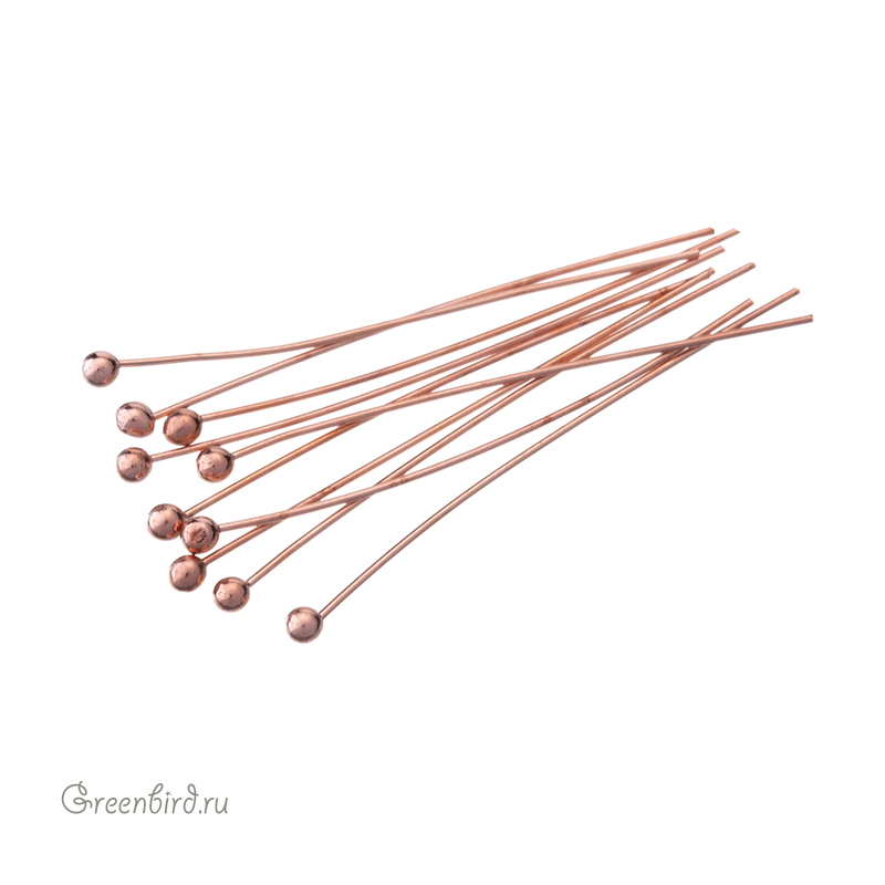 Фурнитура для бижутерии - пины с шариком. Материал: латунь, покрытие: розовое золото. Длина: 30 мм, толщина: 0,5 мм, диаметр шарика: 2 мм. Производство: Корея. Цена указана за 10 шт.