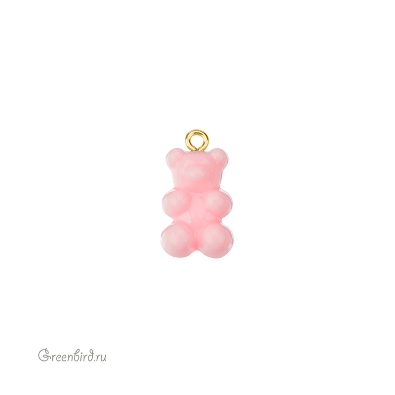 Фурнитура для бижутерии - подвеска в форме мармеладного мишки. Материал: пластик, цвет: непрозрачный, розовый, материал колечка: латунь, покрытие фурнитуры: родий. Размер с колечком: 22 х 12 х 7 мм, внутренний диаметр колечка: 1,8 мм. Производство: Китай. Цена указана за 1 шт.