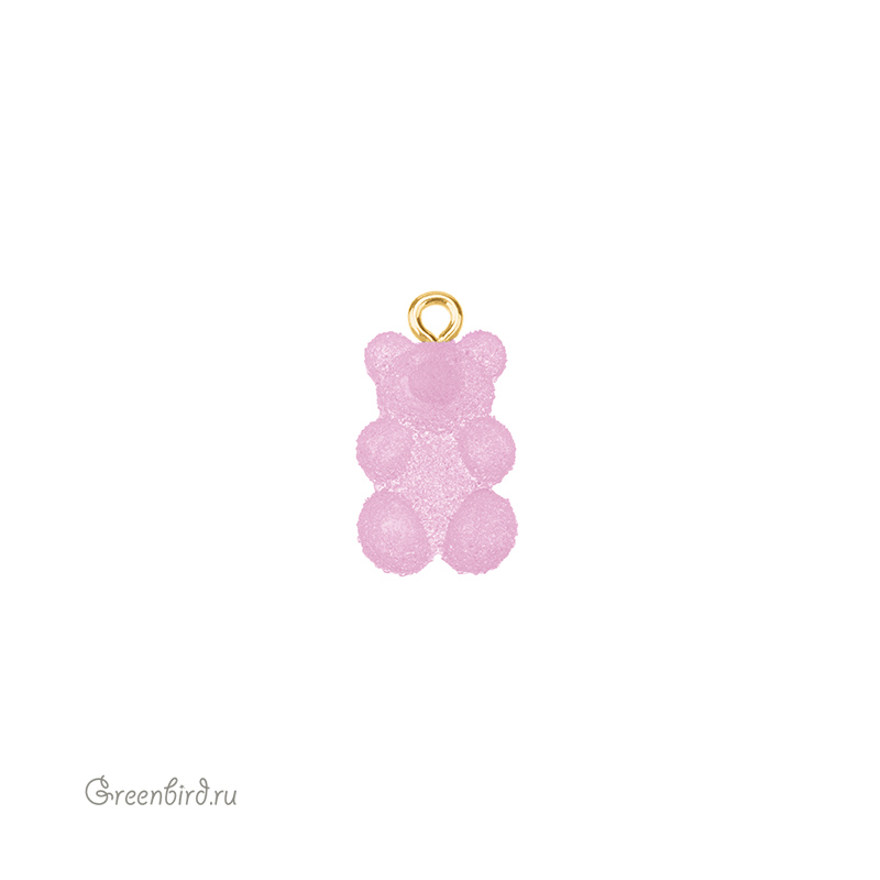Фурнитура для бижутерии - подвеска в форме мармеладного мишки. Материал: пластик, цвет: матовый, сиреневый; материал колечка: латунь, покрытие фурнитуры: золото. Размер с колечком: 20 х 11 х 6,5 мм, внутренний диаметр колечка: 1,8 мм. Производство: Китай. Цена указана за 1 шт.