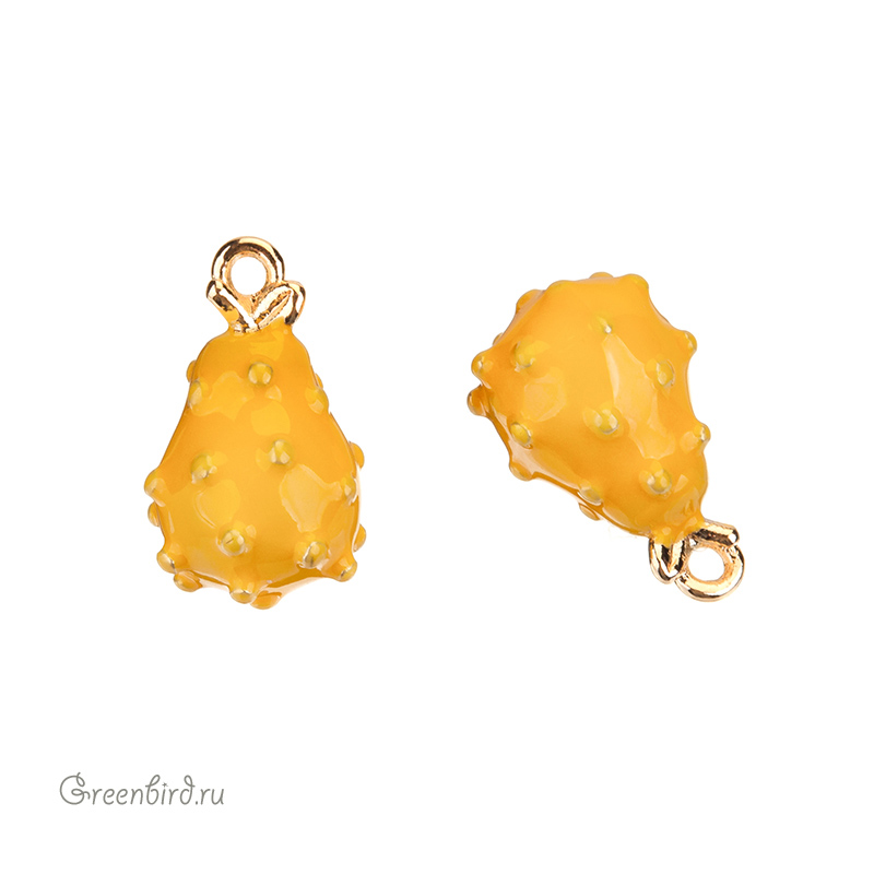 Фурнитура для бижутерии - подвеска в форме кивано (рогатая груша)с эмалью. Материал: латунь, покрытие: золото. Цвет: желтый. Размер с колечком: 12 х 7 мм, внутренний размер колечка: 1,5 мм. Производство: Китай. Цена указана за 1 шт.
