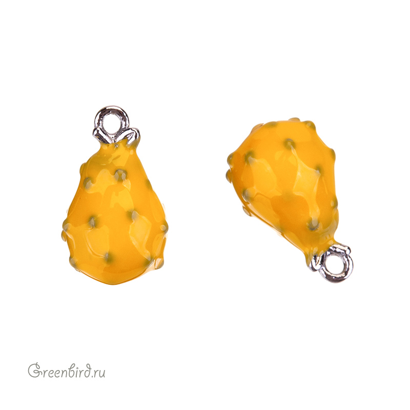 Фурнитура для бижутерии - подвеска в форме кивано (рогатая груша)с эмалью. Материал: латунь, покрытие: родий. Цвет: желтый. Размер с колечком: 12 х 7 мм, внутренний размер колечка: 1,5 мм. Производство: Китай. Цена указана за 1 шт.