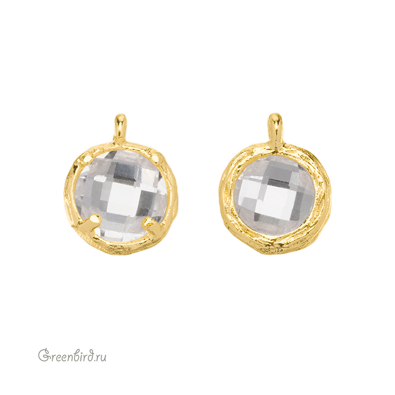Фурнитура для бижутерии - подвеска круглая с кристаллом. Материал: латунь, покрытие: золото. Цвет вставки: Crystal. Размер с колечком: 9,5 х 7,5 х 4 мм, внутренний диаметр колечка: 1,2 мм. Производство: Китай. Цена указана за 1 шт.