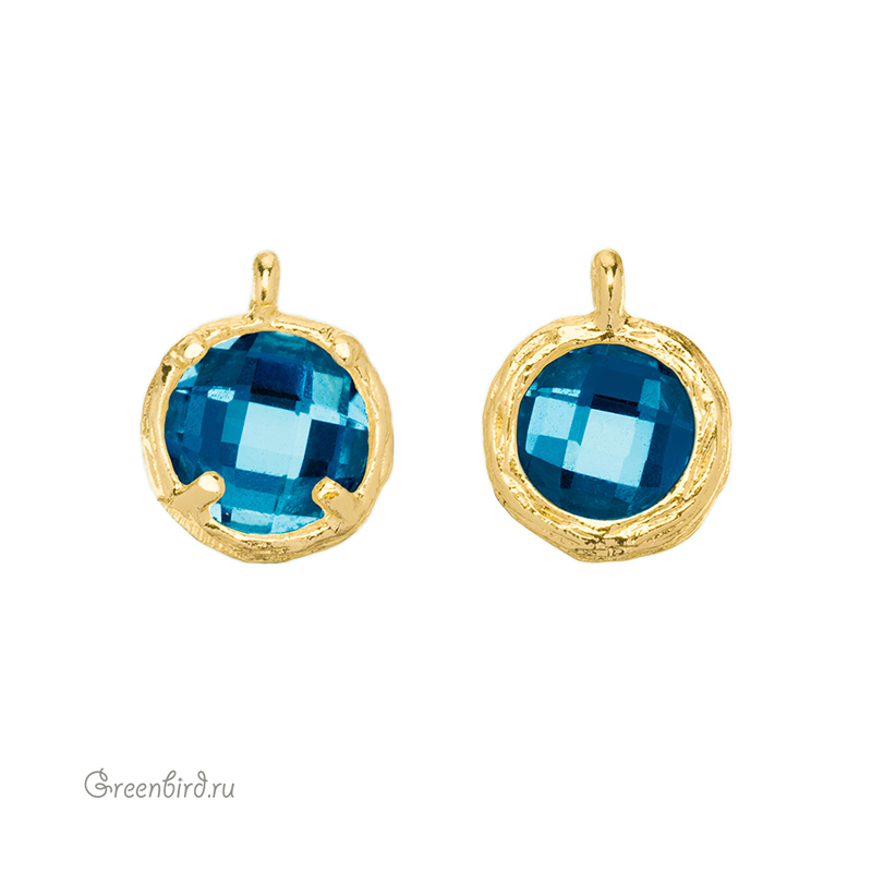 Фурнитура для бижутерии - подвеска круглая с кристаллом. Материал: латунь, покрытие: золото. Цвет вставки: Montana. Размер с колечком: 9,5 х 7,5 х 4 мм, внутренний диаметр колечка: 1,2 мм. Производство: Китай. Цена указана за 1 шт.