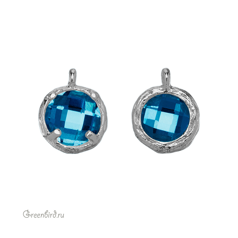 Фурнитура для бижутерии - подвеска круглая с кристаллом. Материал: латунь, покрытие: родий. Цвет вставки: Montana. Размер с колечком: 9,5 х 7,5 х 4 мм, внутренний диаметр колечка: 1,2 мм. Производство: Китай. Цена указана за 1 шт.