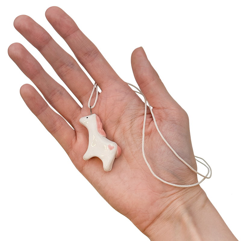 Фурнитура для бижутерии — керамический кулон-подвеска ручной работы в форме лошадки. В комплекте с подвеской идет вощеный хлопковый шнурок случайного цвета.