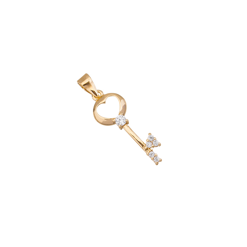 Фурнитура для бижутерии - подвеска в форме ключика, украшенного фианитами. Материал: латунь, покрытие: золото. Размер с колечком без бейла: 20 x 7,5 мм, внутренний диаметр колечка: 1 мм. Производство: Китай. Цена указана за 1 шт.