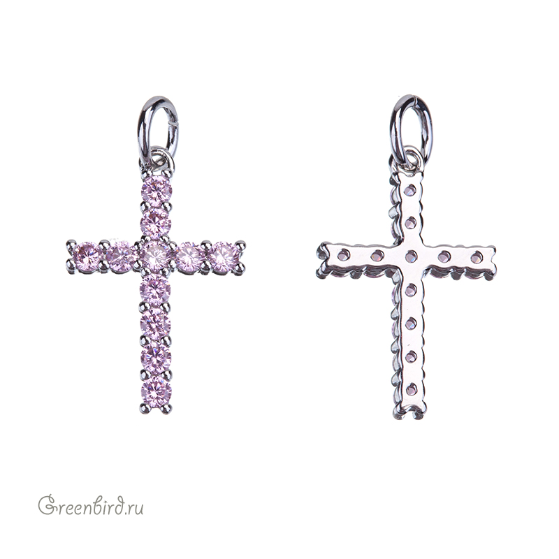 Фурнитура для бижутерии - подвеска в форме крестика с фианитами. Материал: латунь, покрытие: родий. Цвет вставки: бледно-розовый. Размер с колечком: 22 х 12,3 х 2,7 мм, внутренний диаметр колечка: 3,3 мм. Производство: Китай. Цена указана за 1 шт.