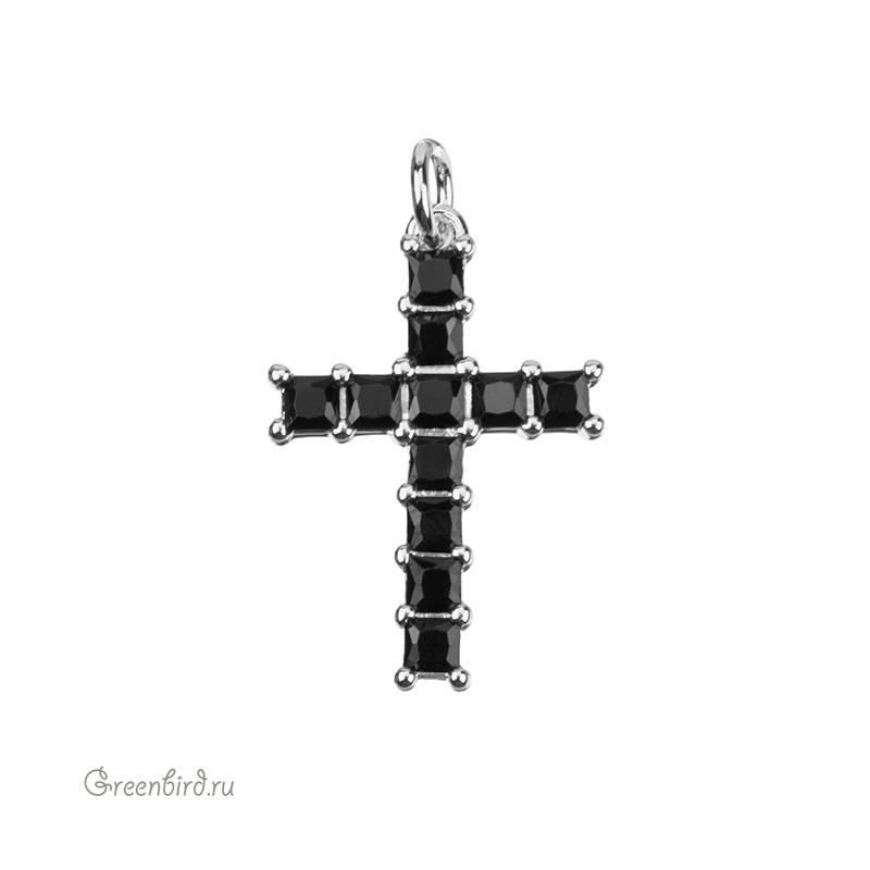 Фурнитура для бижутерии - подвеска в форме крестика с кристаллами. Материал: латунь, покрытие: родий. Цвет вставки: черный. Размер с колечком: 25 х 15 х 2 мм, внутренний диаметр колечка: 3,3 мм. Производство: Китай. Цена указана за 1 шт.