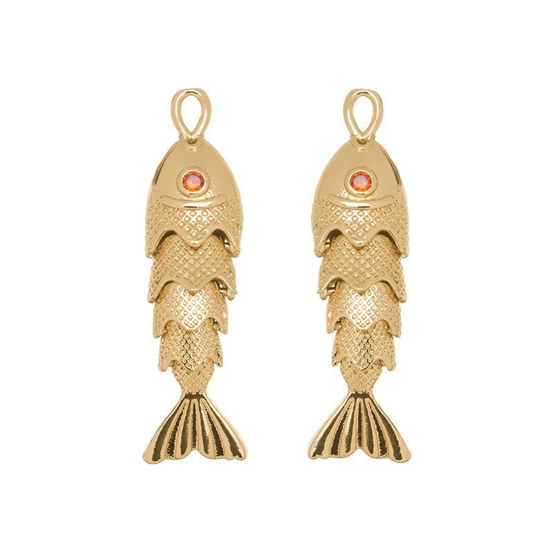 Фурнитура для бижутерии - подвеска в форме рыбки с фианитами. Материал: латунь, цвет покрытия: золото. Размер с колечком: 8,5 х 33,5 х 6,5 мм. Производство: Китай. Цена указана за 1 шт.
