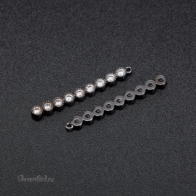 Фурнитура для бижутерии - подвеска с фианитами. Материал: латунь, покрытие: gunmetal (оружейная сталь), темный. Размер с колечком: 3 х 26 х 1,9 мм, внутренний диаметр колечка: 0,8 мм. Производство: Китай. Цена указана за 1 шт.