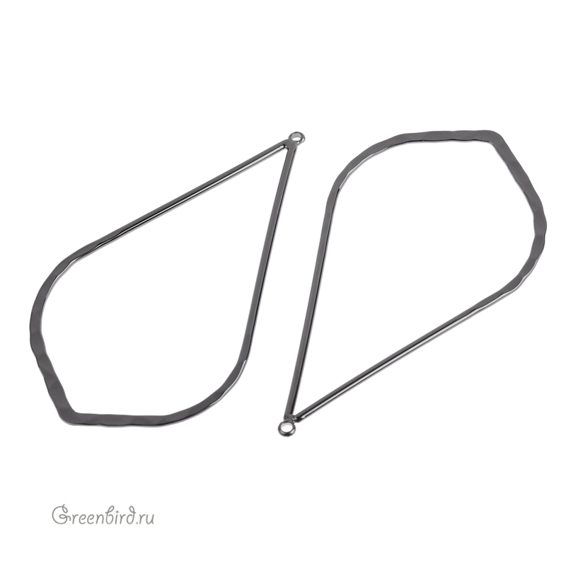Фурнитура для бижутерии - подвеска-рамка с уплощенной нижней частью. Материал: латунь, покрытие: gunmetal (оружейная сталь). Размер с колечком: 38,7 х 69,7 мм, внутренний размер в самом широком месте: 35,2 мм, отверстие колечка: 1,4 мм. Производство: Китай. Цена указана за 1 шт.