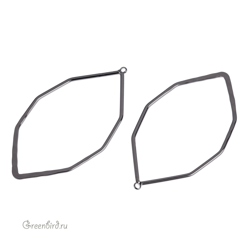 Фурнитура для бижутерии - подвеска-рамка с уплощенной нижней частью. Материал: латунь, покрытие: gunmetal (оружейная сталь). Размер с колечком: 36 х 65,3 мм, внутренний размер в самом широком месте: 32,9 мм, отверстие колечка: 1,8 мм. Производство: Китай. Цена указана за 1 шт.