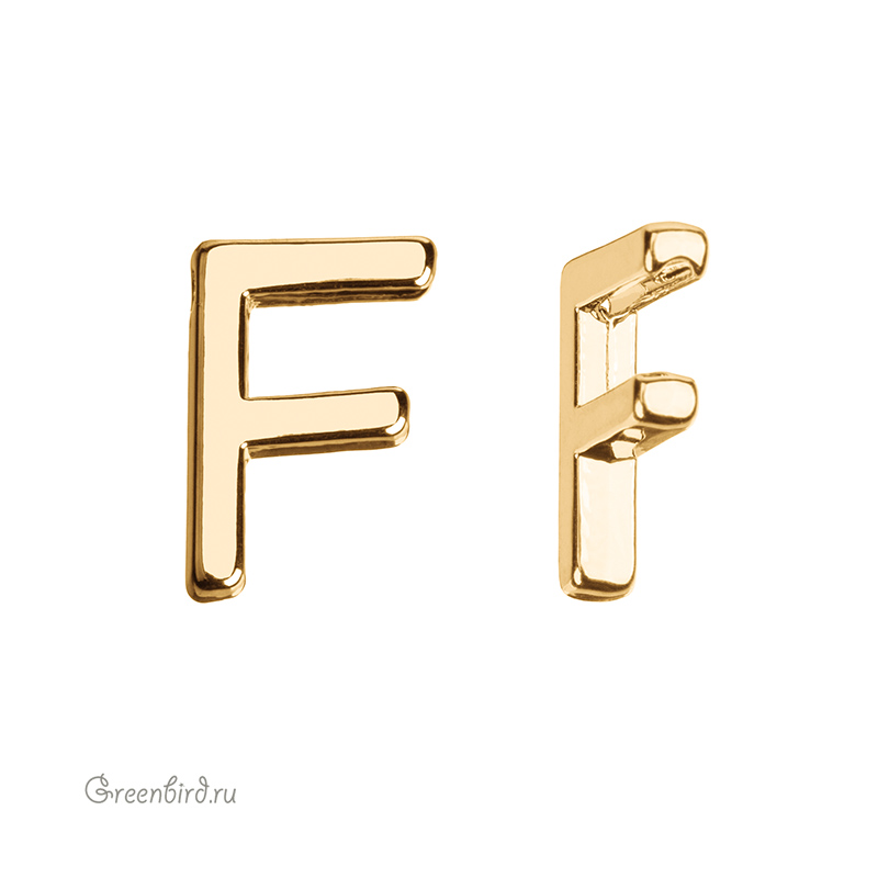 Фурнитура для бижутерии - подвеска в форме буквы «F», гладкая. Материал: латунь, покрытие: золото. Размер: 12 х 8,1 мм, толщина: 2,5 мм, диаметр отверстия: 1,1 мм. Производство: Китай. Цена указана за 1 шт.