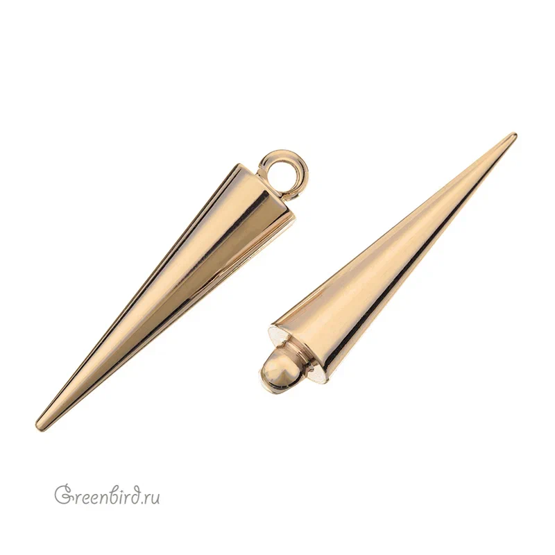 Фурнитура для бижутерии - подвеска в форме шипа. Материал: латунь, покрытие: золото. Размер: 36 х 8 мм, диаметр отверстия: 2,5 мм. Производство: Китай. Цена указана за 1 шт.