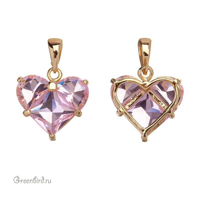 Фурнитура для бижутерии - объемная подвеска в форме сердца с бейлом, украшенная крупными фианитами. Материал: латунь, покрытие: золото. Цвет вставки: прозрачный розовый. Размер с колечком: 20 х 14 х 5 мм, внутренний размер бейла: 2,6 х 4 мм. Производство: Китай. Цена указана за 1 шт.