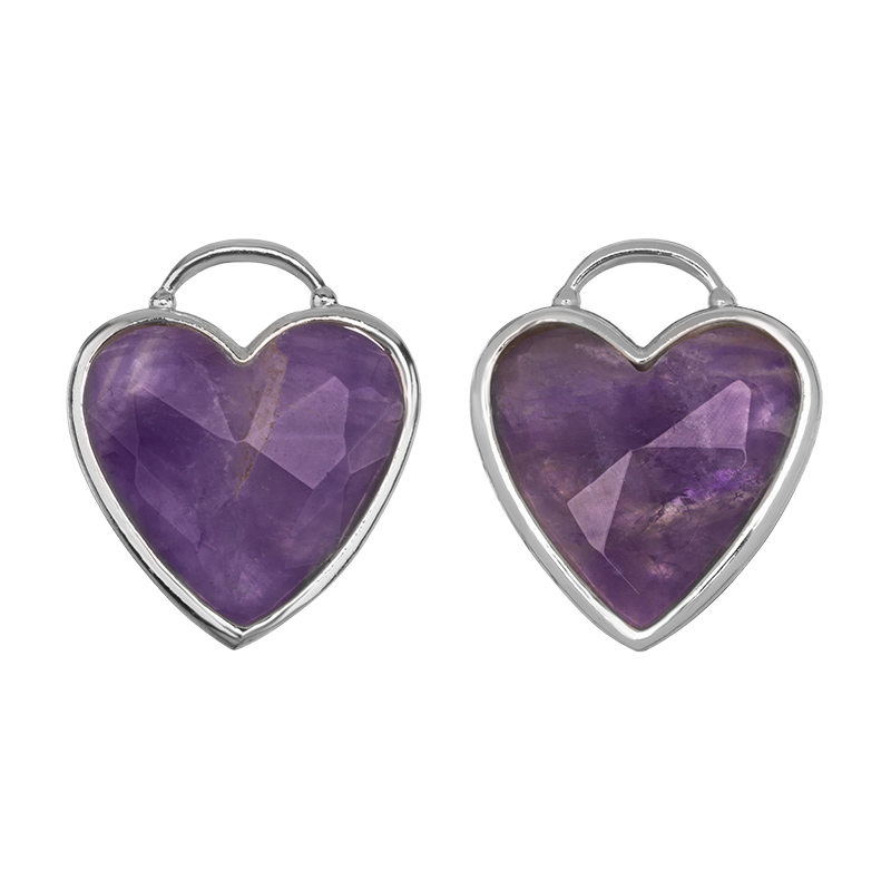 Фурнитура для бижутерии — подвеска «Каменное сердце» с аметистом. Материал: латунь с покрытием цвета родий.