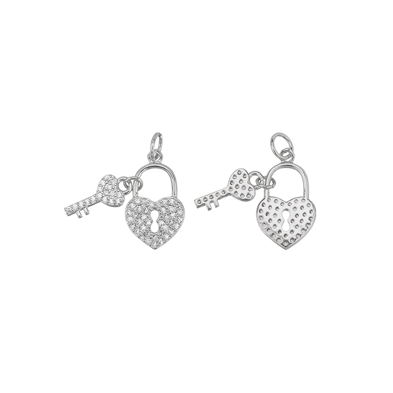 Фурнитура для бижутерии - подвеска в форме замочка-сердца и ключа, инкрустированых фианитами. Материал: латунь, покрытие: родий. Цвет вставки: белый. Размер замочка с колечком: 18 х 10 х 2 мм, размер ключика: 14 х 6 х 2 мм, внутренний диаметр колечка: 3,5 мм. Производство: Китай. Цена указана за 1 шт.