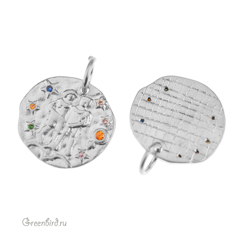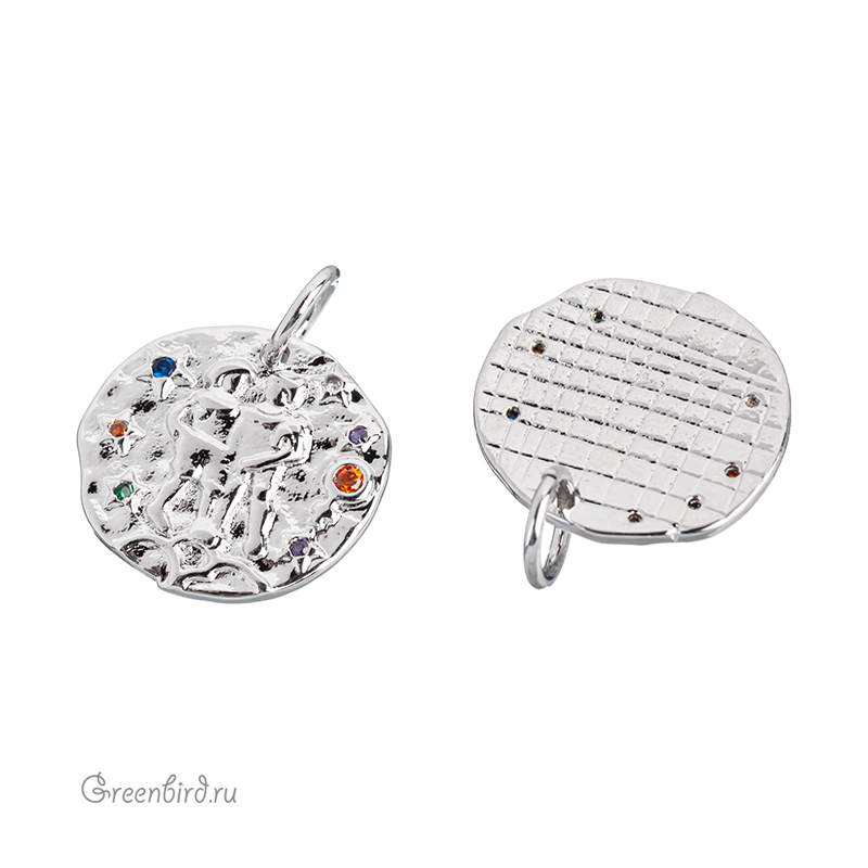 Фурнитура для бижутерии - подвеска односторонняя с зодиакальным символом, украшенная фианитами, с разъемным кольцом. Материал: латунь, покрытие: родий. Цвета фианитов: сиреневый, синий, оранжевый, зеленый, хрусталь. Размер: 14,8 х 13,9 мм, толщина: 1,6 мм, кольцо: 5,7 мм, толщина проволоки: 0,8 мм, общая высота: 17,8 мм. Обратите внимание: в зависимости от партии покрытие может быть глянцевым или более матовым. Возможны наплывы покрытия на фианиты. Производство: Китай. Цена указана за 1 шт.