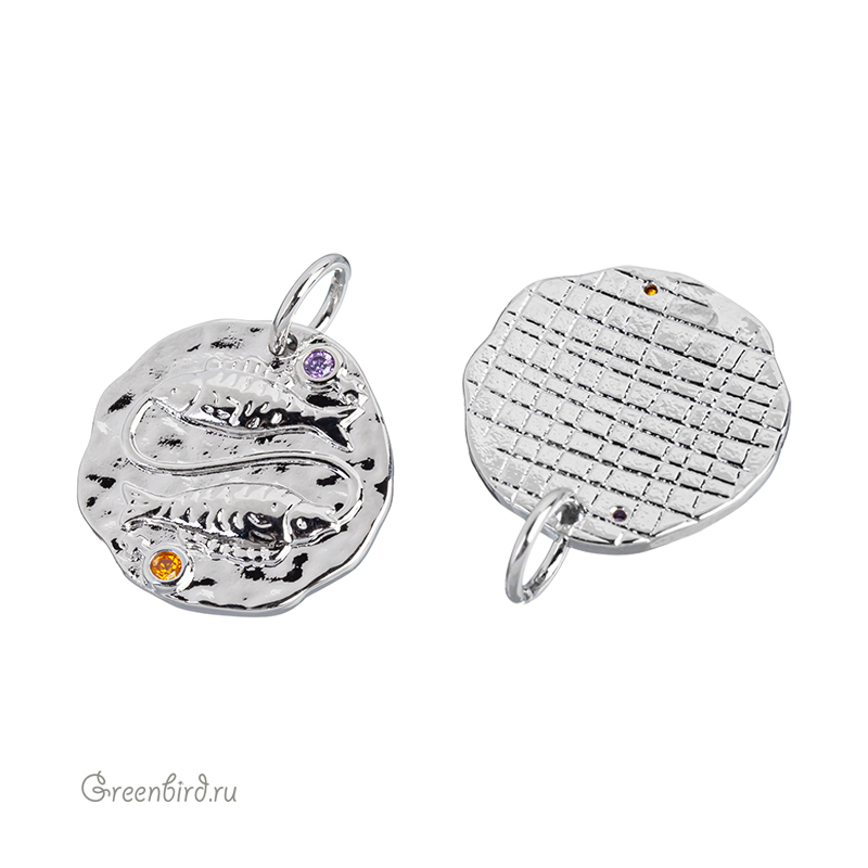 Фурнитура для бижутерии - подвеска односторонняя с зодиакальным символом, украшенная фианитами, с разъемным кольцом. Материал: латунь, покрытие: родий. Цвета фианитов: сиреневый, оранжевый, хрусталь. Размер: 14,9 х 15,2 мм, толщина: 1,9 мм, кольцо: 5,6 мм, толщина проволоки: 0,9 мм, общая высота: 18,6 мм. Обратите внимание: в зависимости от партии покрытие может быть глянцевым или более матовым. Возможны наплывы покрытия на фианиты. Производство: Китай. Цена указана за 1 шт.
