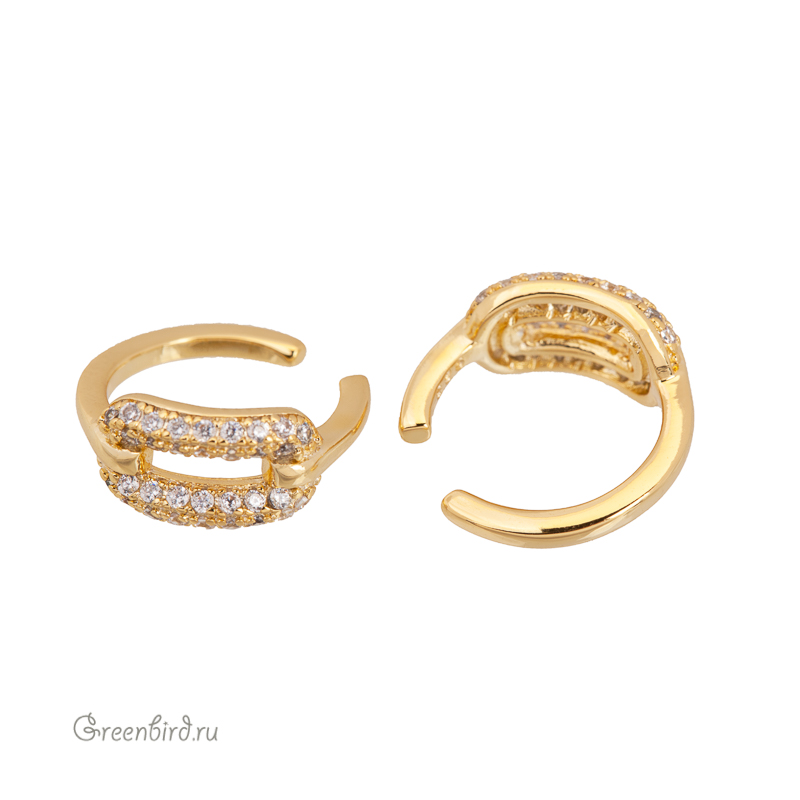 Фурнитура для бижутерии - кафф-кольцо с фианитами (кристальным паве) без колечек и креплений. Материал: латунь, покрытие: светлое золото. Общий размер: 5,8 х 13,6 мм, ширина дужки без декоративного элемента: 1,3 мм, внутренний размер декоративного элемента: 1,3 х 4,9 мм, расстояние между концами: 3,9 мм, внутренний диаметр примерно 10 мм. В зависимости от партии размеры могут незначительно отличаться. Производство: Китай. Цена указана за 1 штуку.