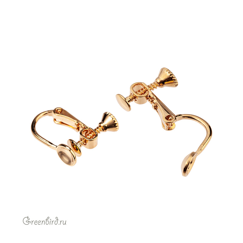 Металлические клипсы с винтиком, с чашечкой для вклеивания бусины. Материал: латунь, покрытие: золото. Размер: 10 х 15,3 мм, чашечка: 5,6 мм. Подходит для бусин 4 мм. Производство: Корея. Цена указана за пару.