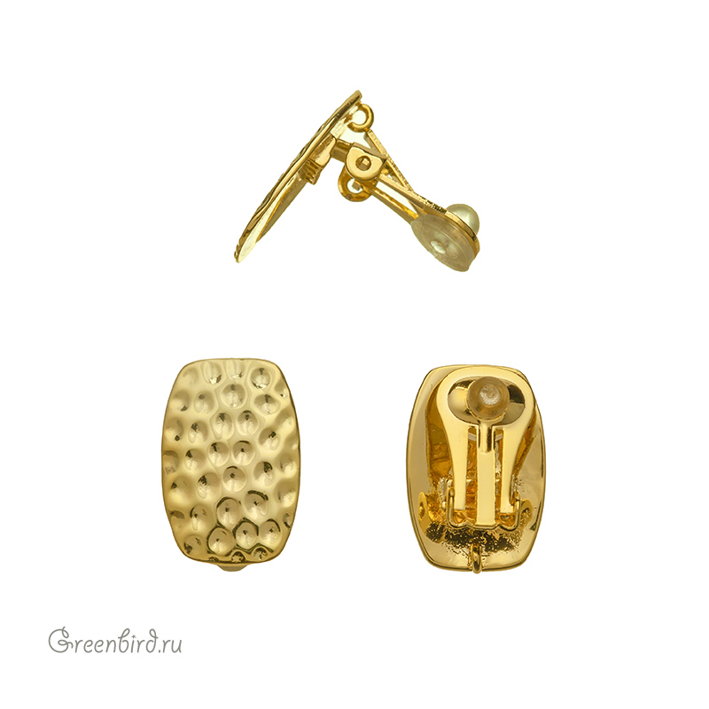 Фурнитура для бижутерии - клипсы фактурные с мягкой силиконовой заглушкой. Материал: латунь, покрытие: золото. Размер с петелькой: 12,3 х 18,4 мм. Производство: Китай. Цена указана за пару.