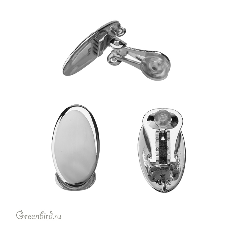 Фурнитура для бижутерии - клипсы гладкие с мягкой силиконовой заглушкой. Материал: латунь, покрытие: родий. Размер с петелькой: 10,3 х 18,4 мм. Производство: Китай. Цена указана за пару.