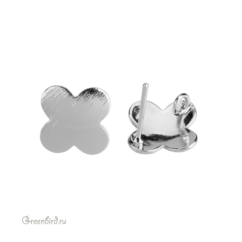Фурнитура для бижутерии - пуссеты с текстурированным декоративным элементом и спрятанным на оборотной стороне колечком. Материал: латунь, покрытие: родий. Размер декоративного элемента: 14 х 14 мм, внутренний диаметр колечка: 2,3 мм, толщина штырька: 0,8 мм. Обратите внимание: пуссеты продаются без заглушек. Производство: Китай. Цена указана за пару.